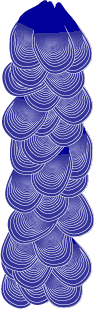 - Keith's whole process starts with seed he buys from the guy in California and then grows to three-quarters of an inch in his huge, enclosed flupse (how many tanks were there, Sean?). The flupse is enclosed in a Butler building and has a crane which moves on tracks longer than the length of the building, enabling it to pick up tanks and dump them into a Shaker table or all the way outside to a boat. The shaker has a hopper that tilts with a pneumatic ram to empty the little oysters onto the 2 layer shaker/sorting table. Keith believes that the shape of the final product is achieved here in the flupse, and the ones he showed us were indeed beautiful with deep cups.